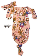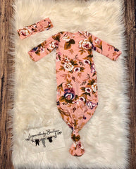 0-6 month floral gown and headband set