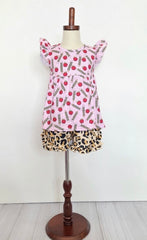 This is an adorable boutique style set **Top measurements** 12-18m:13.5" length & 9" chest, 2T: 15.5" length & 9.5" chest, 3T: 17.5" length & 10" chest, 4T: 18.5" lengths & 10.5" chest, 5T: 19.5" length & 11" chest, 6/7: 20.5" length & 12" chest