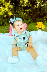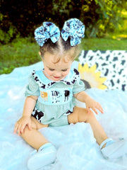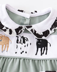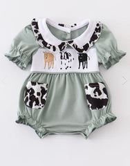 Green cow embroidered romper