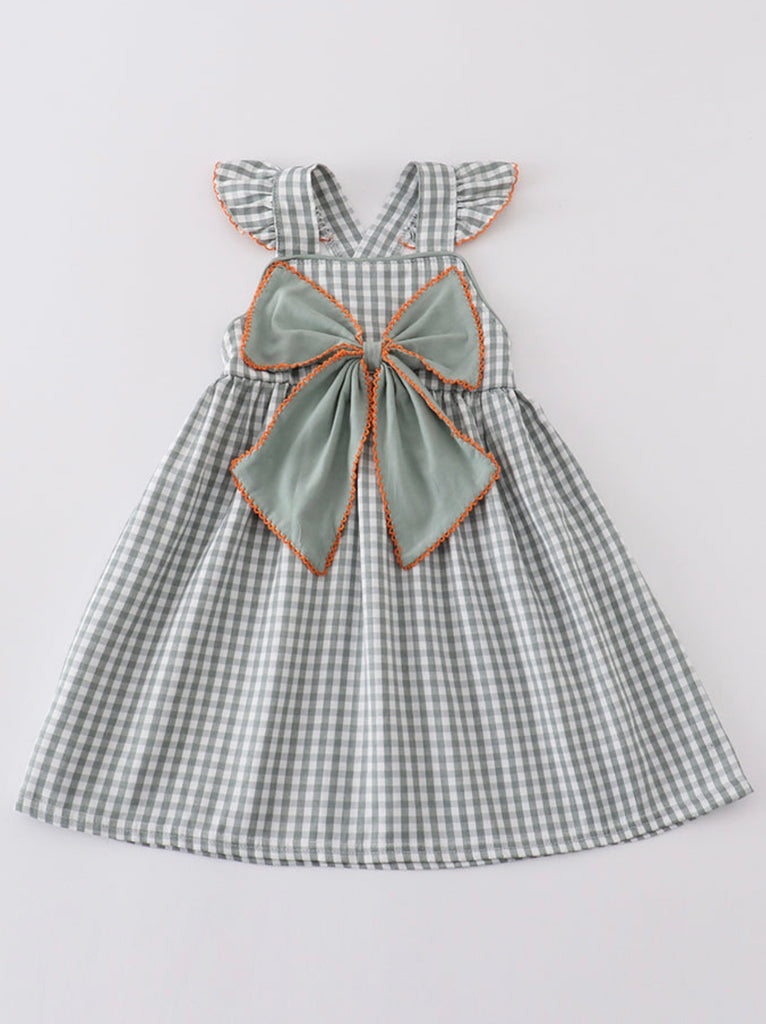 Green woven bow dress