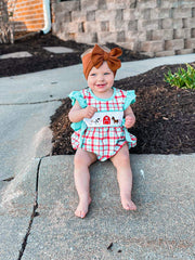 Mint Plaid farm bubble romper