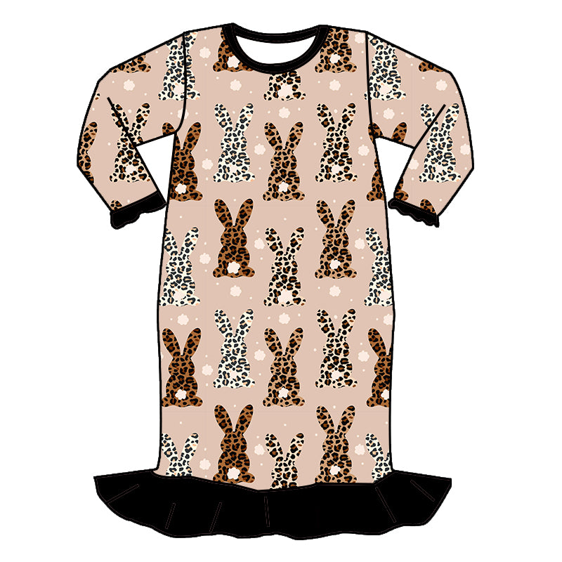 PRE ORDER CLOSES 12/14 leopard bunny long sleeve girl gown bamboo - EARLY march delivery