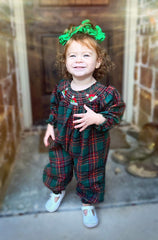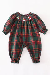 Smocked forest plaid romper