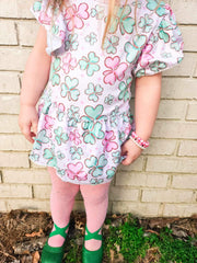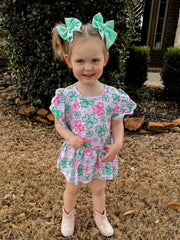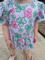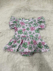 Pink clover skirted romper