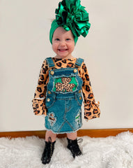 Two piece shamrock skirted overall set