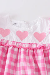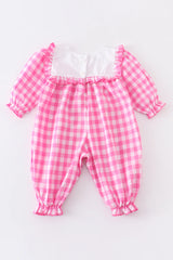 Pink plaid heart embroidered romper