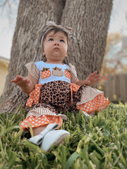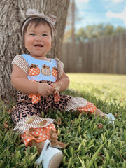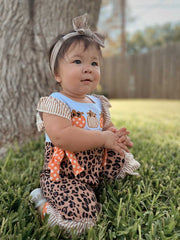 Baby girl pumpkin appliqué romper with ties and flutter sleeves