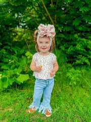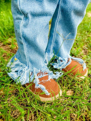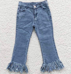 Blue denim fringe jeans