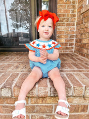 Blue gingham star embroidery romper