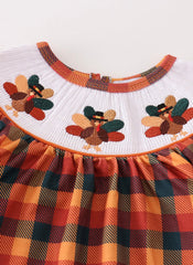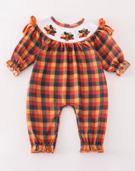 Smocked plaid turkey romper