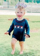 Navy baseball girl romper