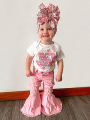 Pink denim bell jeans