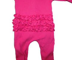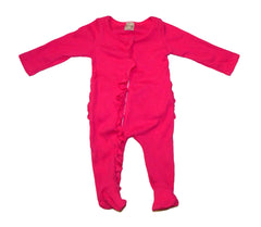 Pink ribbed footie sleeper with ruffles on the back side
