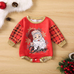 Red Santa believe sweater romper
