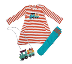 Turkey Stripe dress with socks and purse